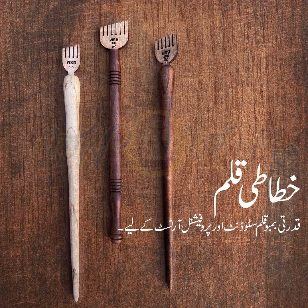 The calligraphy bamboo qalam is the traditional tool for large-scale writing in Arabic and Islamic calligraphy. These pens are handmade from a sharpened nib of hardwood, cut and drilled for ink reservoirs, which is then set into a hand-turned handle. We are proud to offer these qalams for students, and professional artist, both hand-turned from hardwood and designed exclusively for Arabic and Islamic calligraphy. Available Qalam No; 10, 15, 20, 25