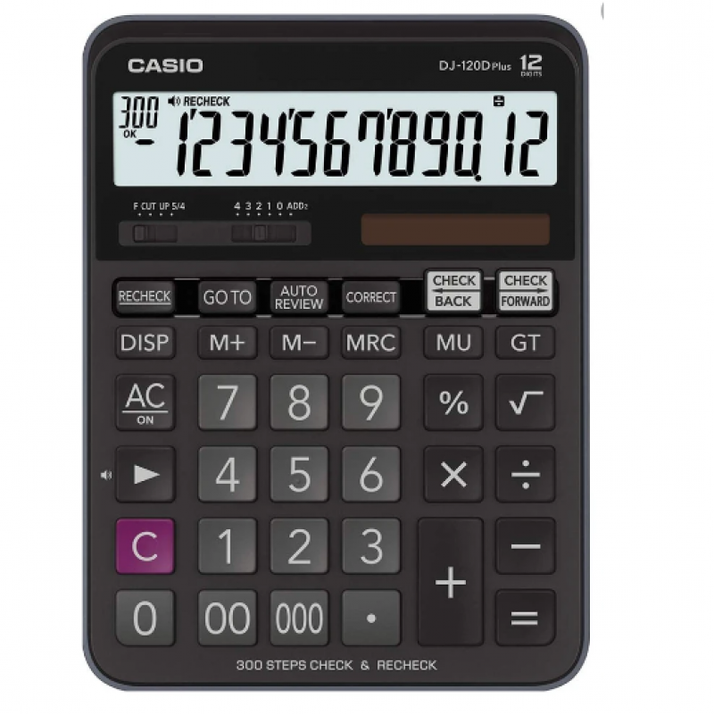 Solar powered with battery backupTax-included costs, tax-deductible costs, discounts, sales prices, taxes, discounts, and profit amounts are automatically calculated. When the light is sufficient, it supplies power by the sunlight, and when the light is insufficient, the battery supplies power. The key operation is stored in the buffer and is not lost even at high-speed input. The larger the display, the easier it is to read the data.