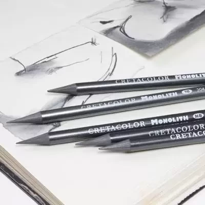 The Monolith woodless graphite pencils are pure graphite sticks protected by a thin lacquer coating. Broad and fine strokes can be applied with equal ease. Sharpen with a regular sharpener.