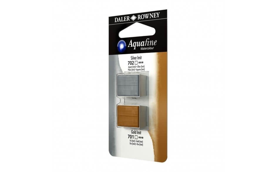 Daler Rowney Aquafine Watercolor Half Pan Pack of 2 Gold & Silver