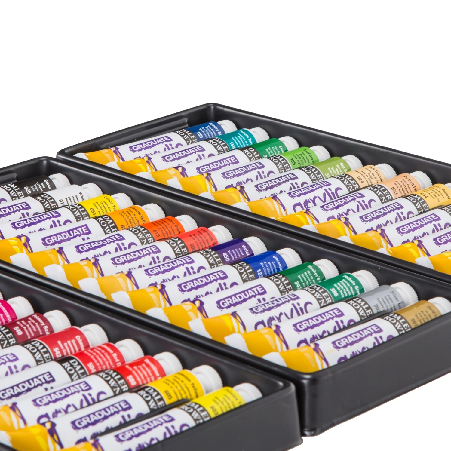 With 48 bright and bold colours, these paints are perfect for crafting, canvas and board painting, as well as adding colour to a variety of other materials! Graduate Acrylic paints have a strong, bright colour that will bring any piece of artwork to life! They are solvent free, water-resistant when dry and offer a fantastic covering power.