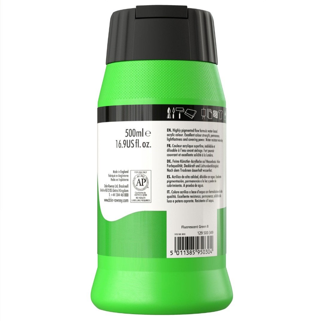 The Daler Rowney System3 Acrylic Paint is a high-quality, water-based acrylic paint with a vibrant fluorescent green color. It comes in a 500ml container, making it ideal for use in larger projects or for artists who require a larger supply of paint.