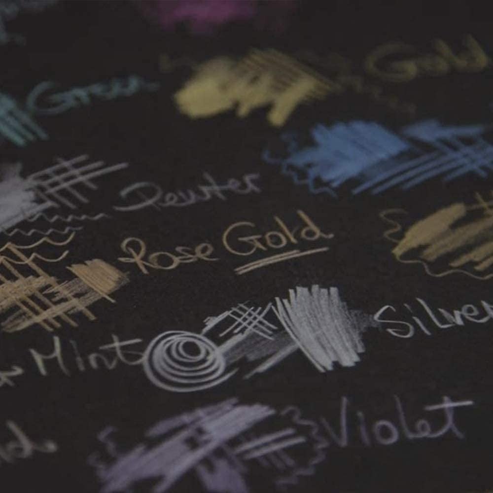 Shimmering, highly metallic Derwent Metallic Pencils blend beautifully together to create vivid and striking effects, particularly on dark paper. The intense metallic formulation and strong core heighten the appearance of the color to produce brilliant definition and rich color application.