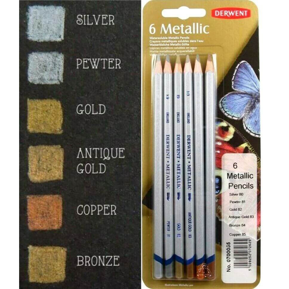 - Derwent Metallic Pencils offer high luster and shine effects in pencil format.