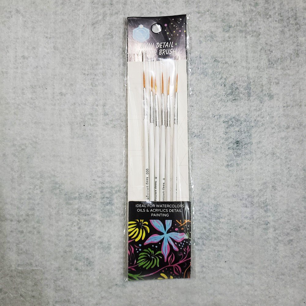 Keep Smiling Fine Liner Paint Brush Set Of 6. Wood handle is made of quality Birch wood which is durable and smooth. Ideal for nail art, watercolor and acrylic painting.