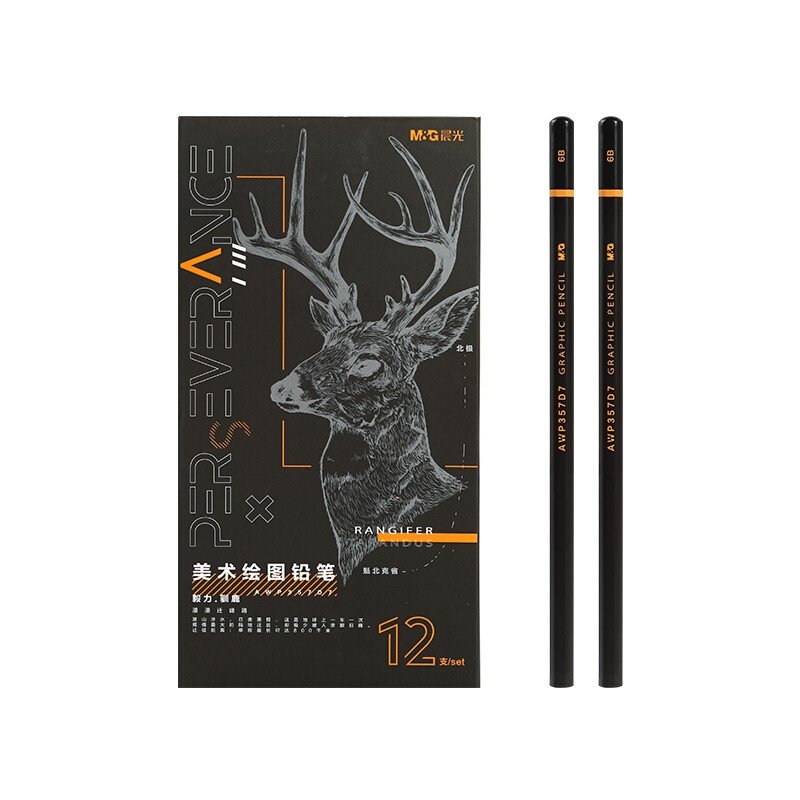 M&G's Perseverance Rangifer Tarandus Sketching Pencils in a pack of 12 having the wonderful animal art drawing pencil set having two pencils of 2H, 2B, 4B, 6B, 8B, 10B each. With a design title of a reindeer i.e. Rangifer Tarandus. Great quality pencils for artists and professionals.