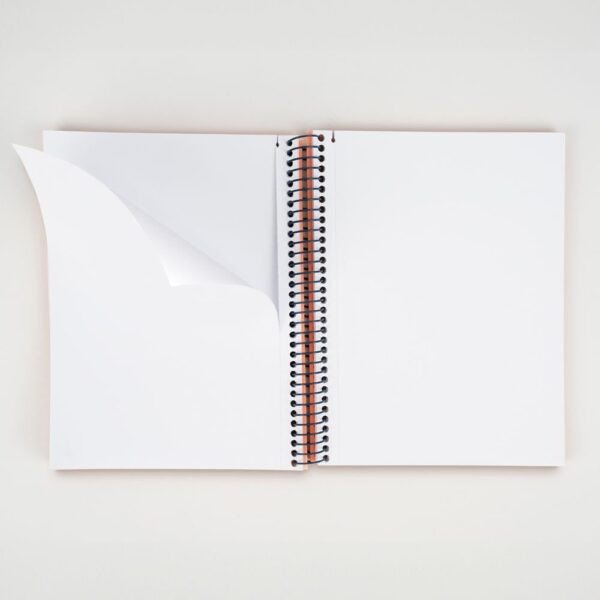A5 sketchbook with metallic spiral and hard cover. 80 sheets, blank paper ideal for sketching and drawing. High quality 95 gr/m² paper, micro-perforated and with 4 holes. Tear starter to facilitate the separation of each sheet. Rigid cardboard cover and shiny embossed MILAN logo. Flexible spiral with the coil-lock system closure hat prevents snagging on clothing or scratches on furniture.