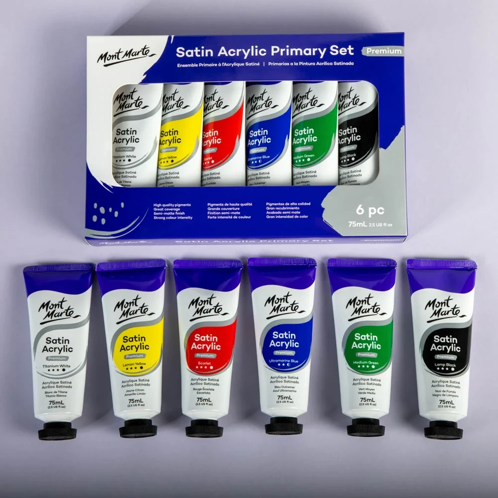 Mont Marte Satin Acrylic has a semi matte finish. It can be diluted with water or acrylic medium for glazing or watercolour techniques. With dilution the pigment still holds strong colour intensity.