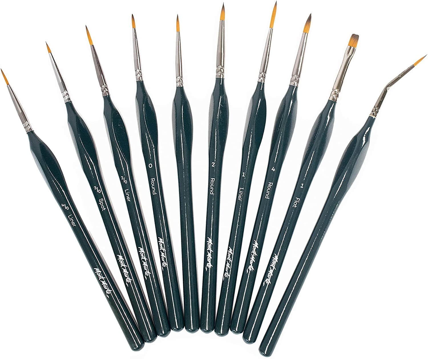 Includes 10 detail brushes: Angled spot liner, Round brush 0, 1, 2, 4, Liner brush 4/0, 2/0, Flat brush 1, Spot brush 3/0