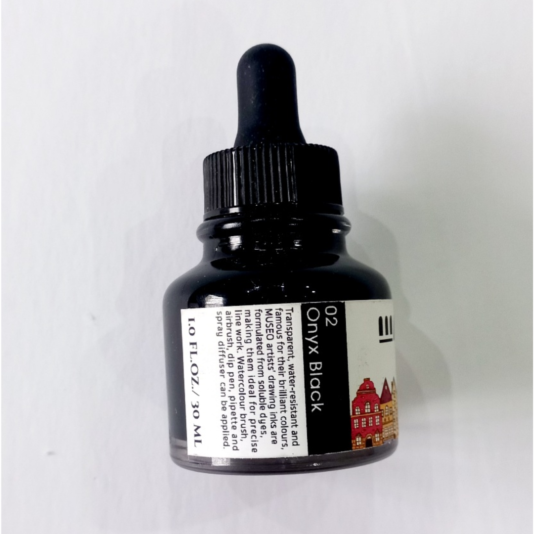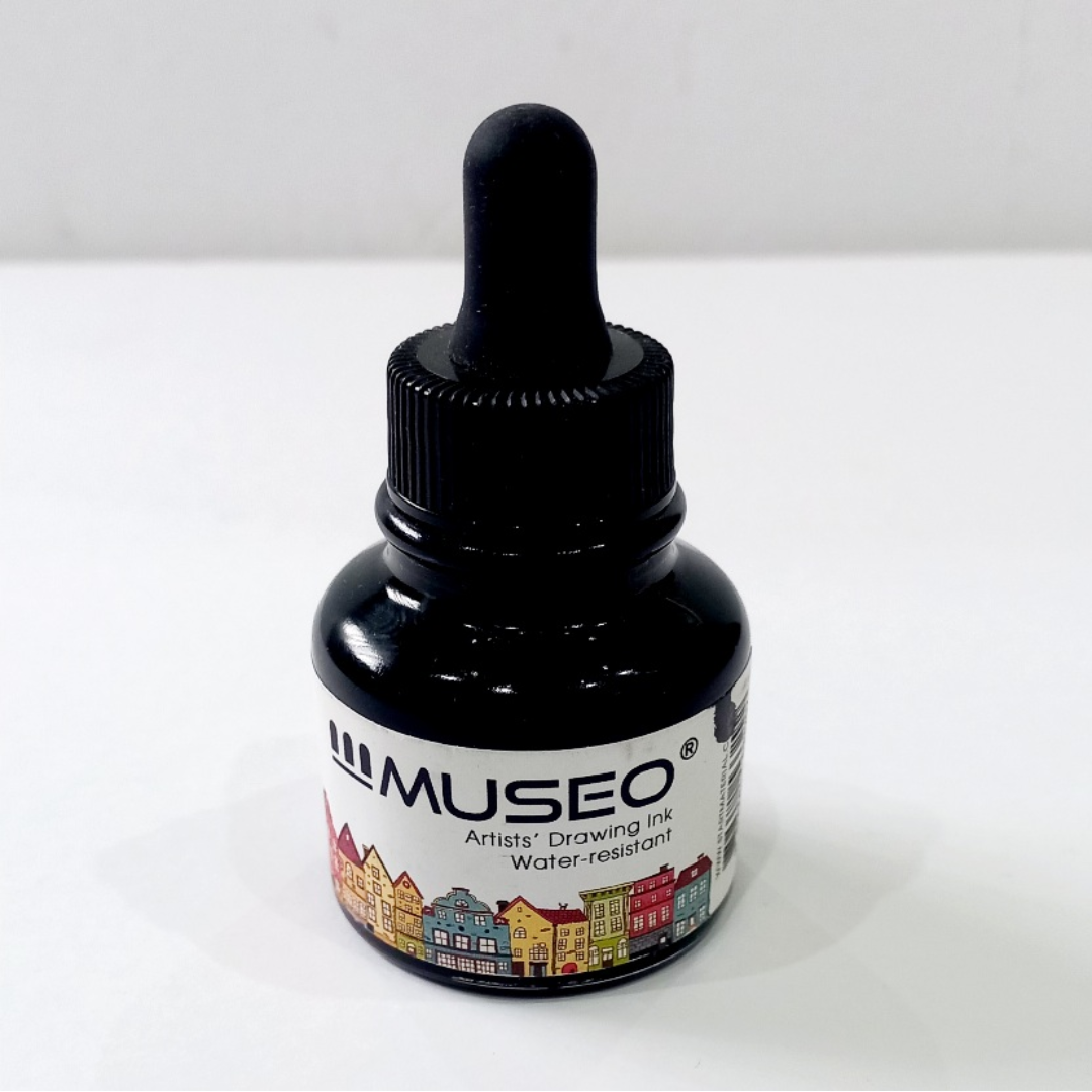 MUSEO drawing ink, which does not allow waterproofing. Mix colors from water-soluble dyes to get many bright colors. For precise line work and other work with software regulations or airbrushes, shake well before use.