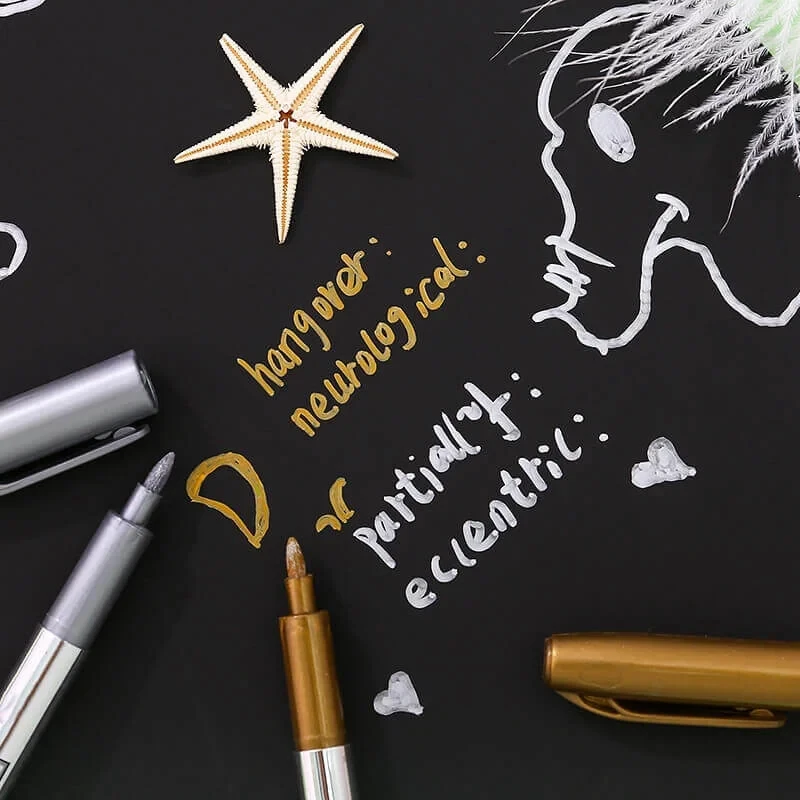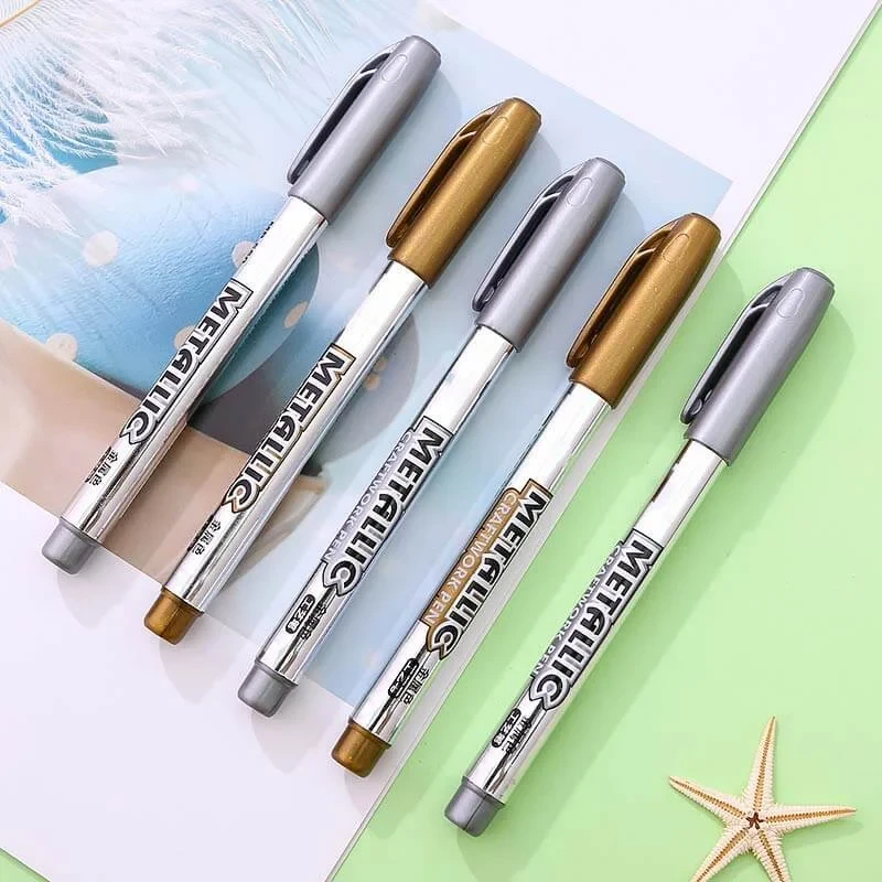 Waterproof Metallic Permanent Paint Marker Pens Gold For Drawing Students, Paper, Cloth, Leather, Plastic, Glass, Ceramic, and CD materials such as writing, painting, etc. High Quality, Non-Toxic, Quick-Drying, Colorful And Shiny. Applicable People: Artists, Art Lovers, Students, Children, etc.