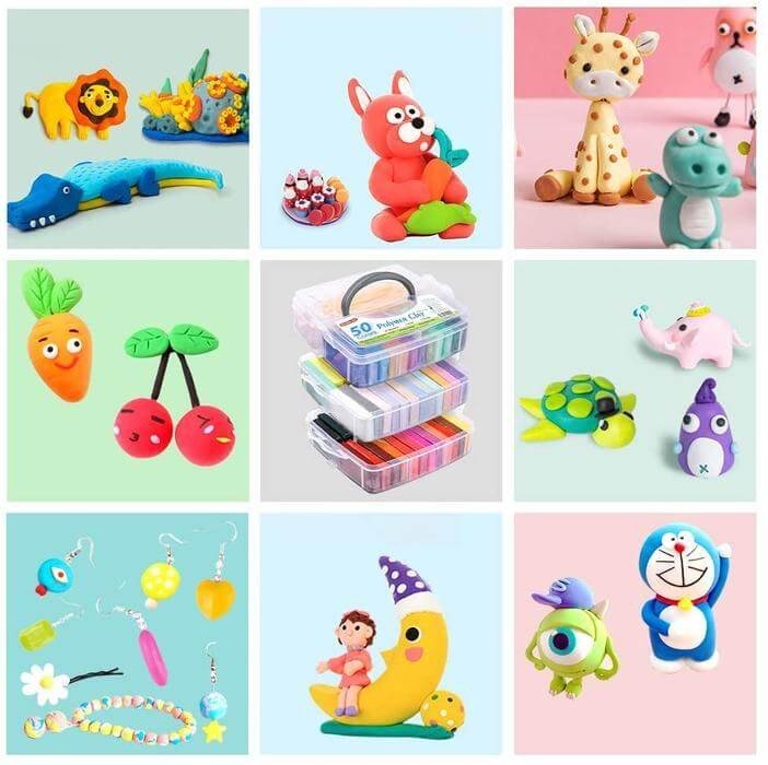 Multi-color polymer clay for clay art is available in 36 multi-color shades. 4×6 inches per price. Adorable products for crafting. Training for intelligence development, hands-on brain, interest training, emotion, grasp, hand-eye coordination. Modeling and Sculpting products.
