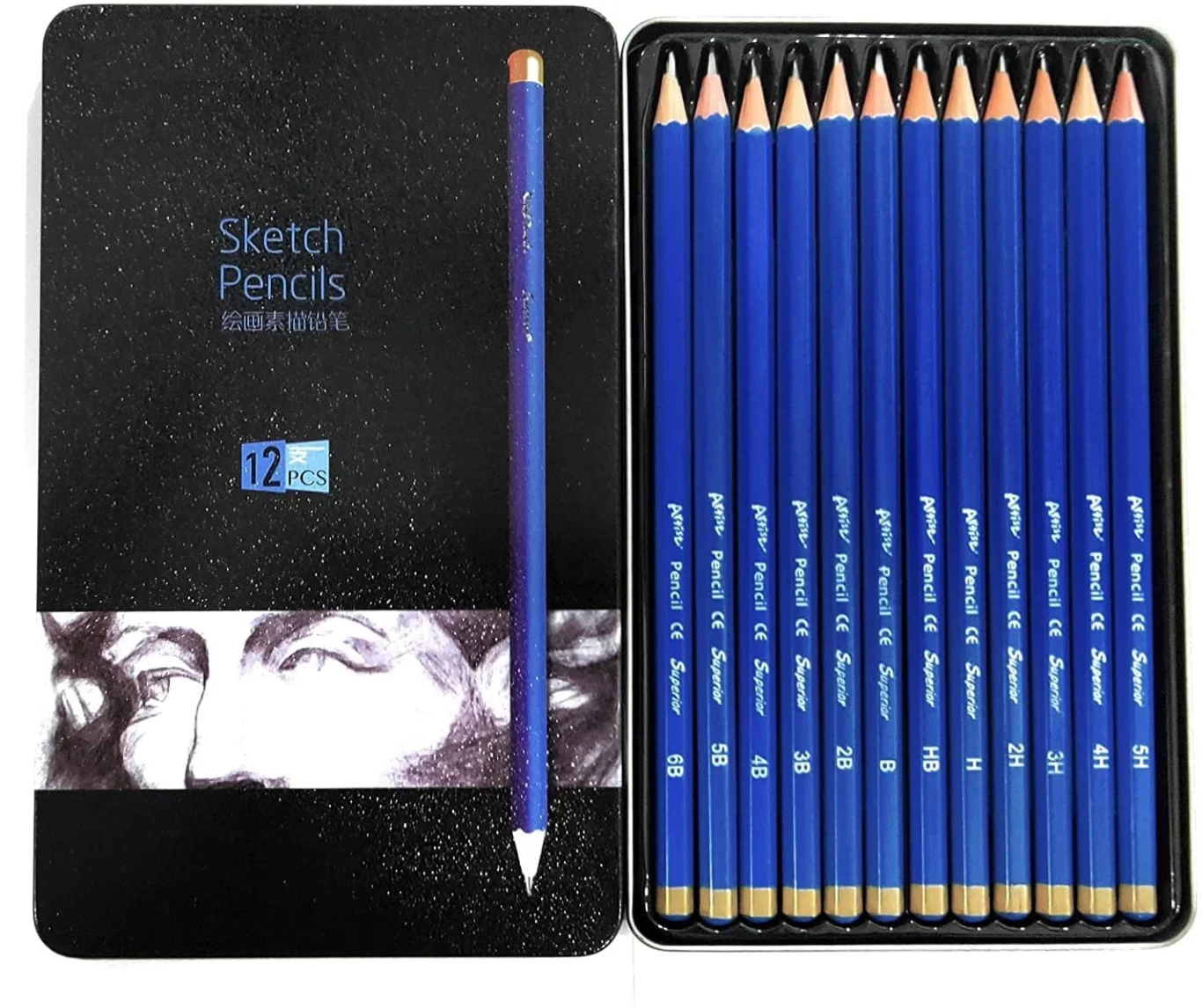 12 Sketching drawing pencils for artists kit include every color you need: 6H, 4H, 2H, HB, B 2B, 3B, 4B, 5B, 6B, 8B, 10B