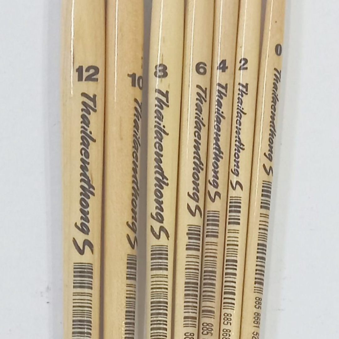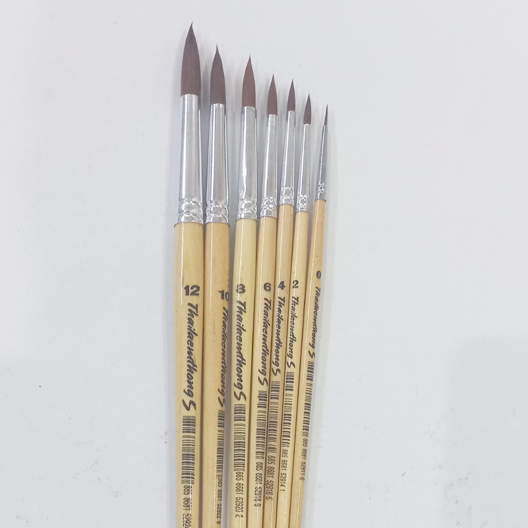 Thailaemthong brush made of the finest quality synthetic hair. These brushes have an excellent color-holding capacity and durability. Handles are sealed and set in seamless aluminium plated ferrules. The brushes is perfect use with watercolor, acrylic and poster color. They are available in 7 sizes from 0 – 12.