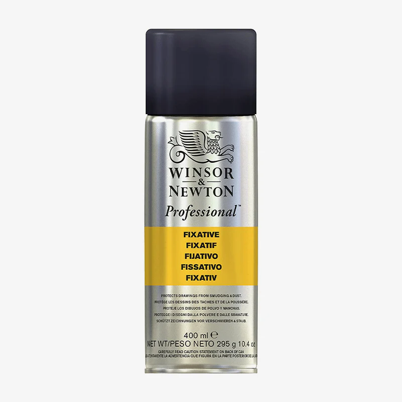 Winsor & Newton Artist’s professional Fixative can be used to preserve works for the long term, or momentarily to prevent smudges while working. It can be applied to works of charcoal, pastel, pencil, and chalk immediately. While the fixative is durable and protects the surface of drawings, it can also be applied while working, as a medium. Fixatives also enable the top of the surface to be continually worked by the artist. This transparent fixative will not affect the color of pastel, although it may darken the color tone, yet at the same time, it improves the adhesion of particles to the surface and lightfastness.