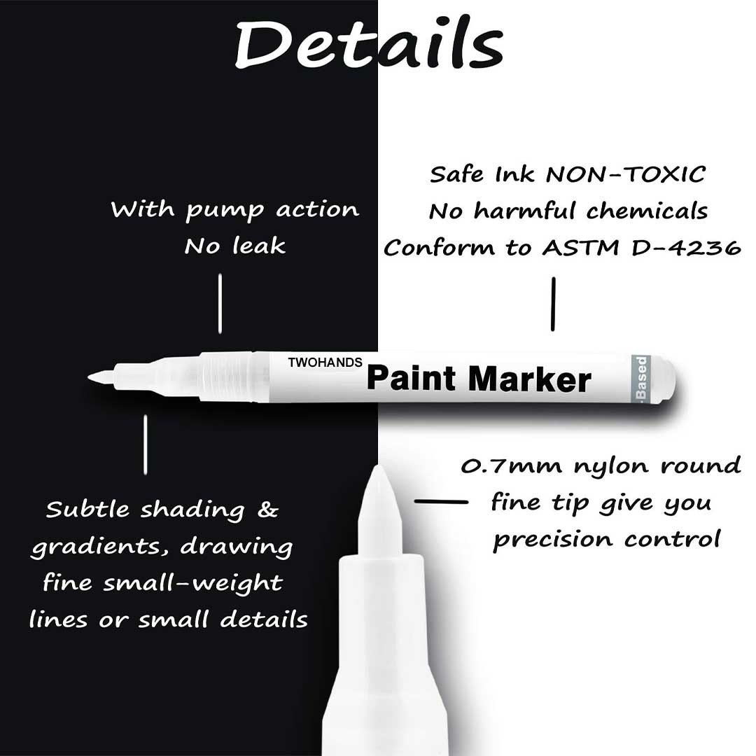 • 5. The round tips on top of the marker are accurate and easy to control and perfect for painting semi-bold medium-weight lines.