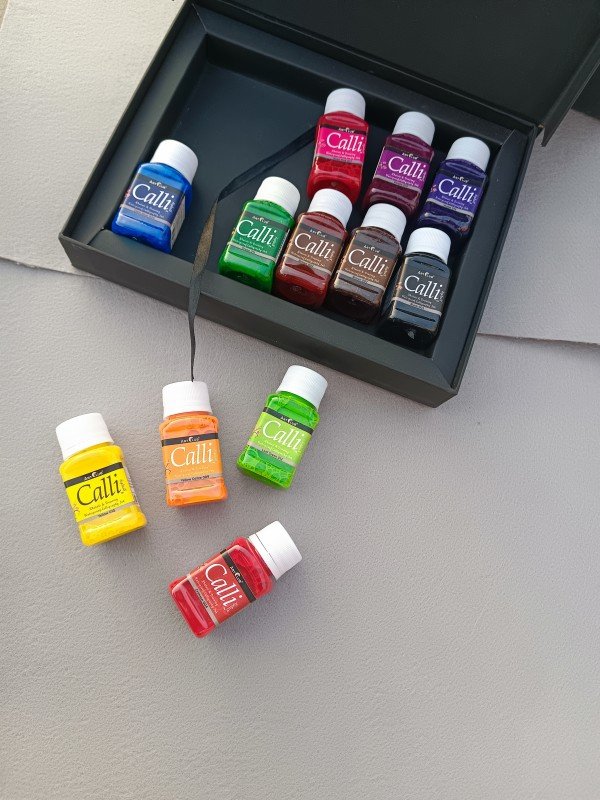 Art Club Calligraphy & Drawing Inks Artist Quality 50ML 12Pcs Pack With 10mm Wooden Dip Qalam
