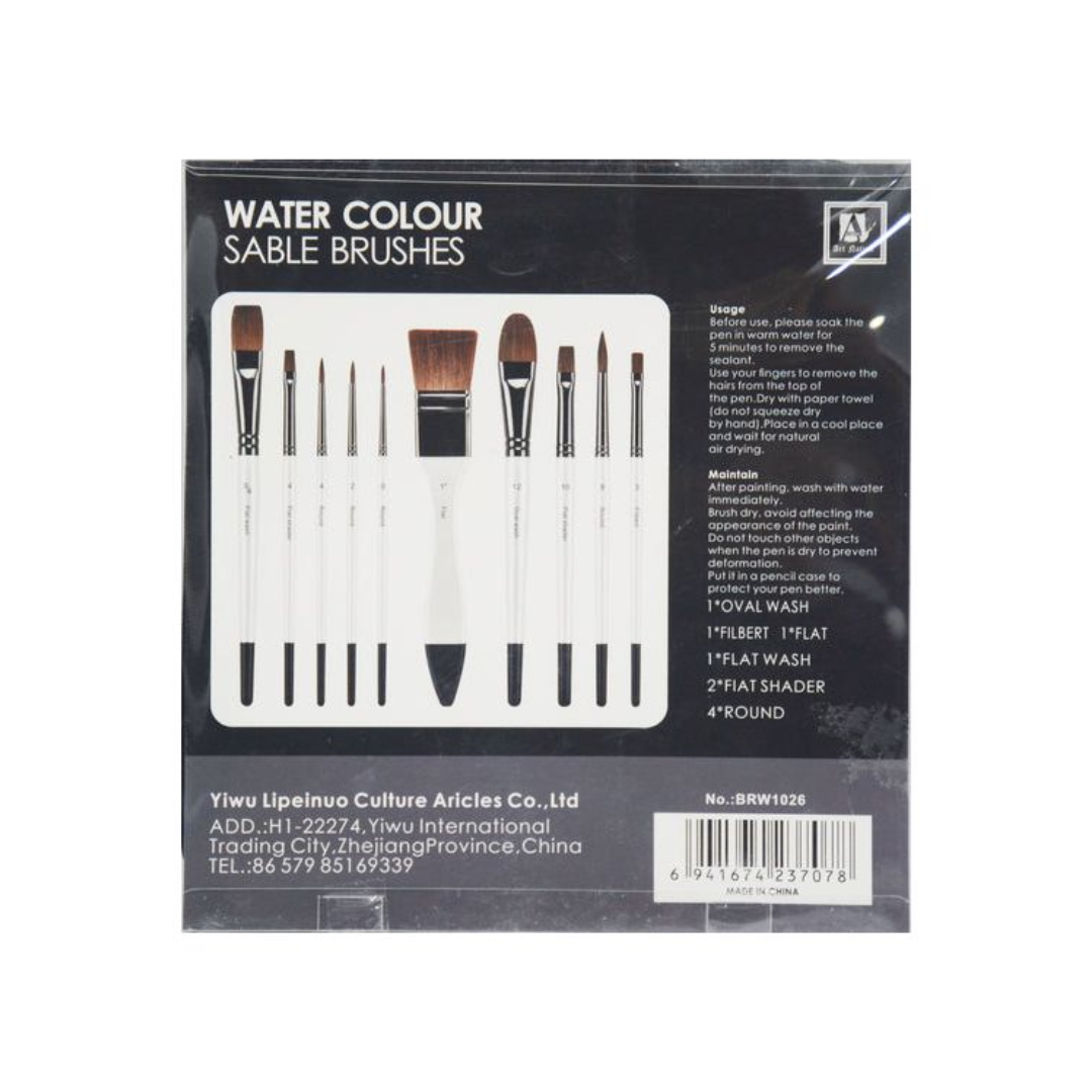 Art Nation Professional WaterColor Sable Brushes Set Of 10