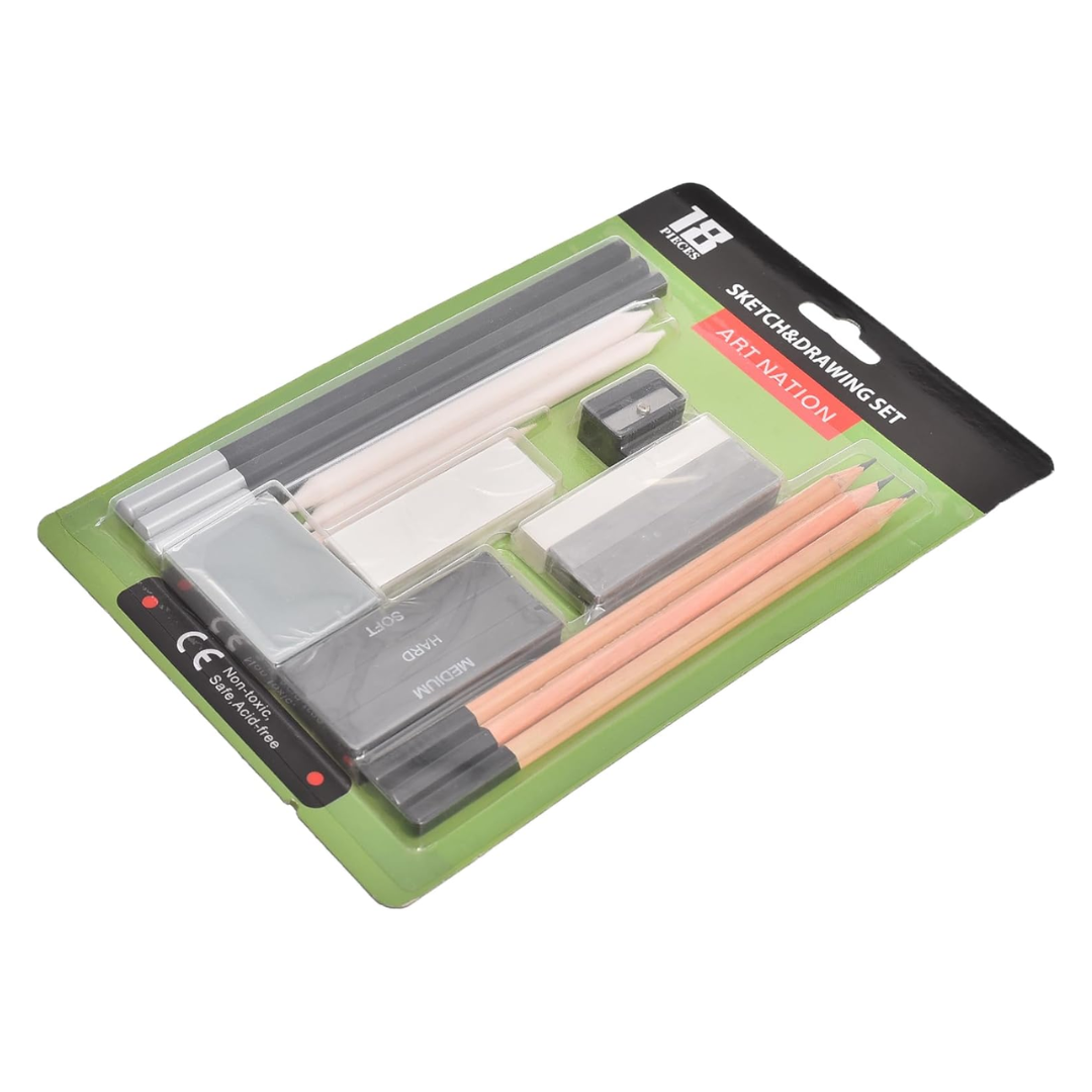 This ART NATION SKETCH & DRAWING SET 18PCS SKD18 is a must-have for any artist or art enthusiast. With 18 pieces included, this set provides a wide range of tools for sketching and drawing. The set includes pencils, charcoal sticks, erasers, and sharpeners, all neatly organized in a compact case. The high-quality materials used in this set ensure that your artwork will look professional and polished. Whether you're a beginner or an experienced artist, this set is perfect for creating stunning sketches and drawings. Get your hands on this set today and take your art to the next level!