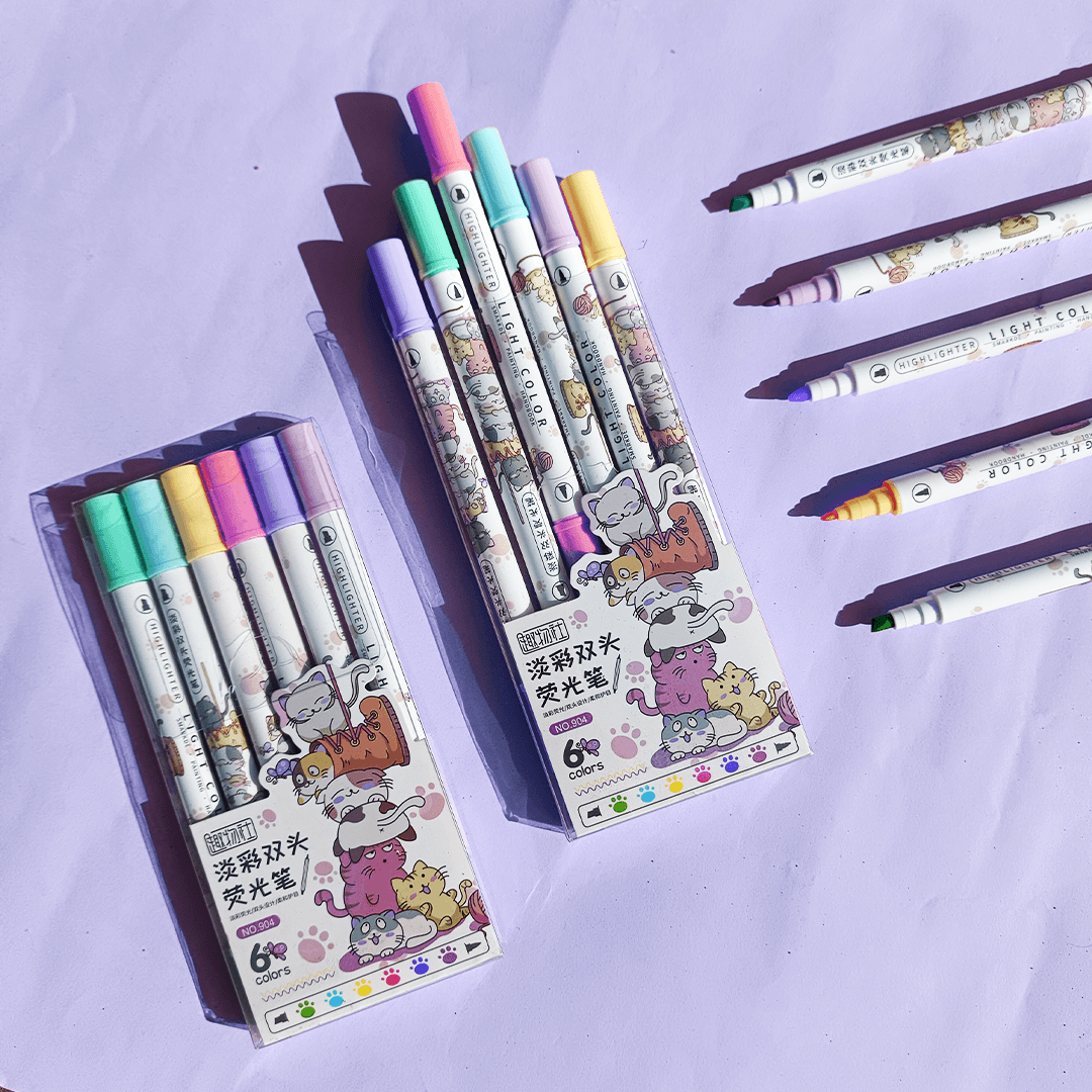 6 Colors set Cute Thick barrel Colorful Highlighter Pen Soft Color for school marker Stationery Highlighter for school