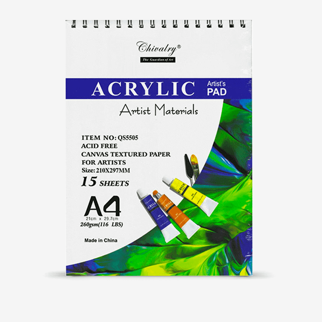 Acid-free.Canvas textured paper.Sheets: 15 Pages.Paper Gram: 260 gsm.Size: A3 And A4.Best For Acrylic And Oil Painting.Brand: Chivalry.