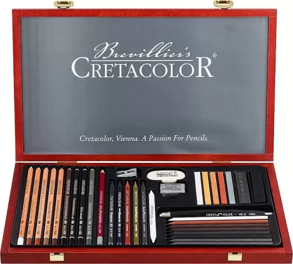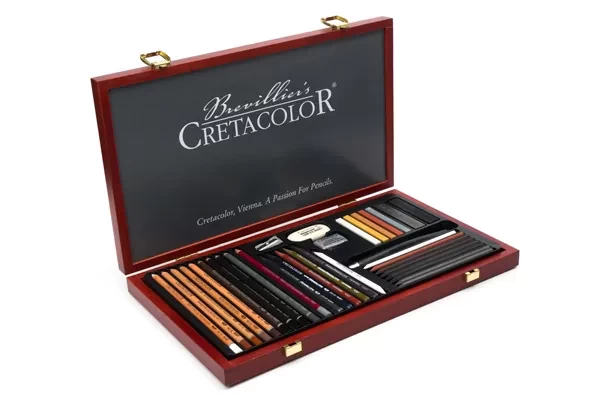 16- Artists’ pencils and leads (sanguine, sepia, white and black pastel, charcoal, Nero oil charcoal) 1-Water-soluble graphite pencil (8b)