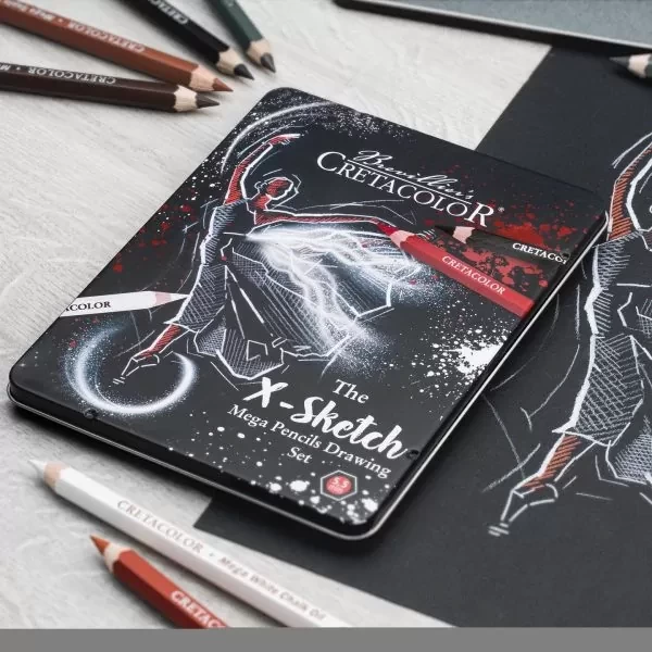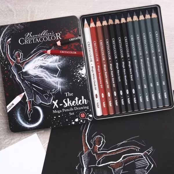 MEGA Drawing Pencil Set for sketching & drawing – highly pigmented oil-based Artist Pencils (5,5mm lead), extremely smooth strokes, high covering effects, easy working on large surfaces.
