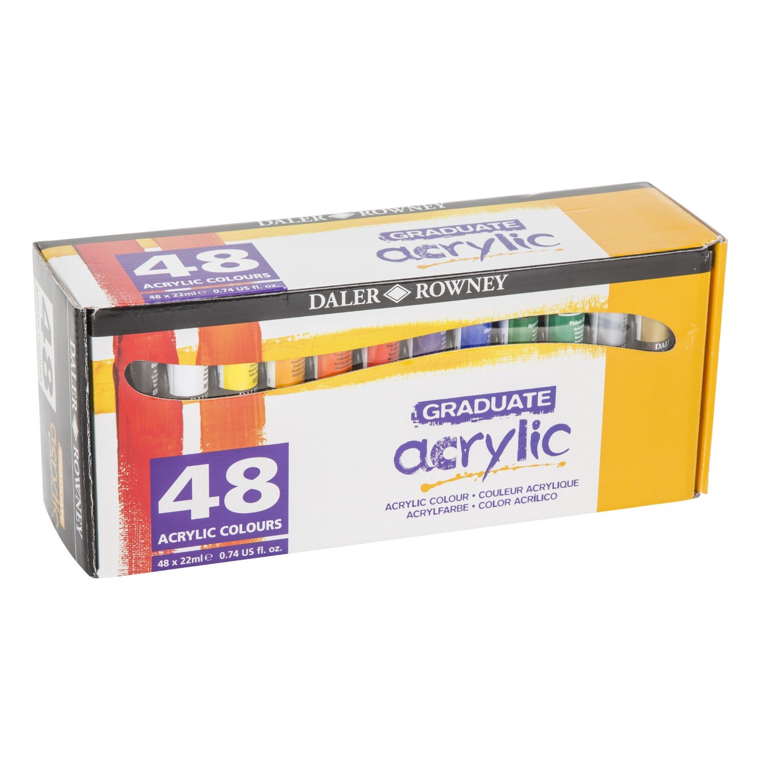 With 48 bright and bold colours, these paints are perfect for crafting, canvas and board painting, as well as adding colour to a variety of other materials! Graduate Acrylic paints have a strong, bright colour that will bring any piece of artwork to life! They are solvent free, water-resistant when dry and offer a fantastic covering power.