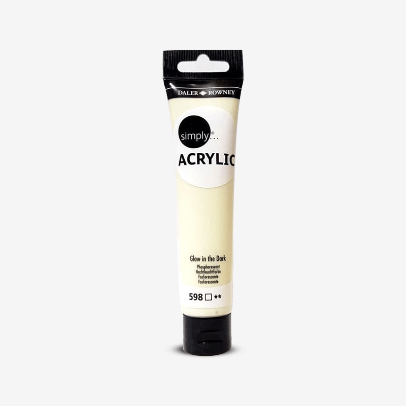 Daler-Rowney Simply Glow In Dark Acrylic Paints are a perfect starting point for artists and hobbyists looking to experiment with acrylics. These soft-body water-based colours can be used straight from the tube, wet easily onto the surface, and can be thinned with water.