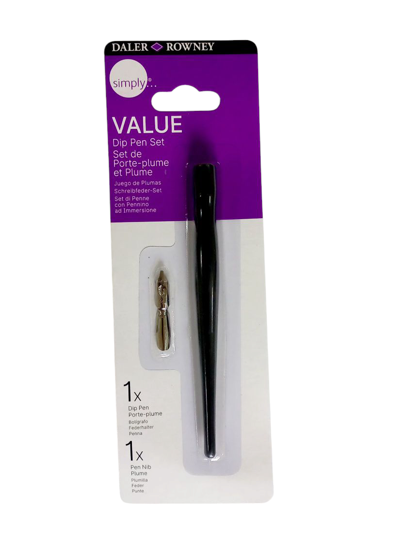 The Daler‑Rowney Value Dip Pen Set includes one sturdy nib holder and a single medium-size nib—perfect for calligraphy, sketching, drawing and decorative line work. Designed for use with India ink, it offers a cost-efficient introduction to dip pen techniques with reliable performance.