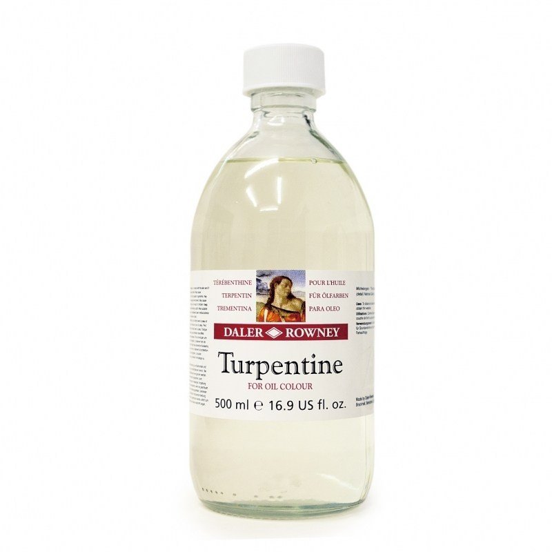 Daler Rowney Turpentine Oil 500ml dilutes oil colour to create thin, quick-drying washes in the early stages of painting. Also used to clean brushes.
