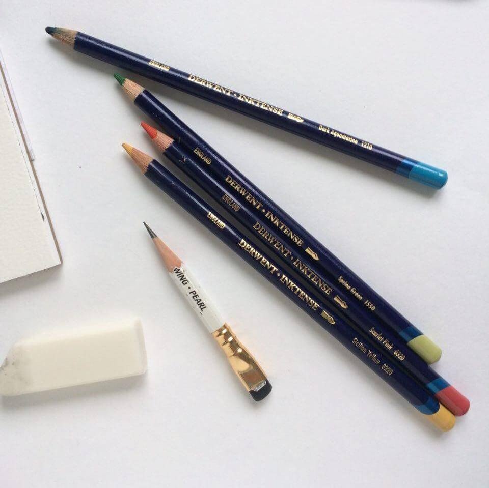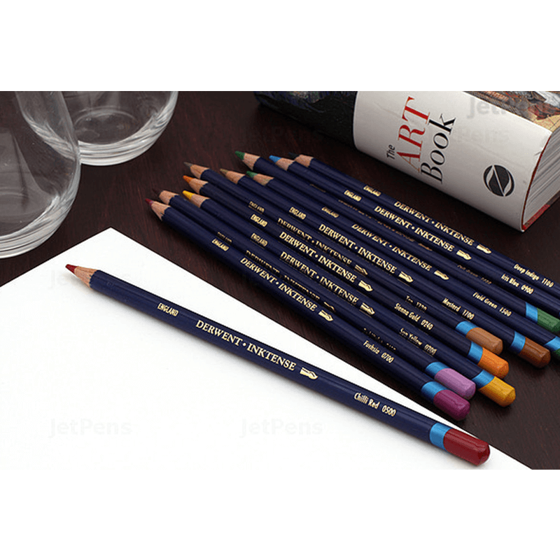 Derwent Inktense Pencils are our best water-soluble pencil ever! You can use them dry but mix them with water and the color turns into vibrant ink. Once it’s dry the color is fixed and because it's permanent it’s great for using on fabric such as silk and cotton.