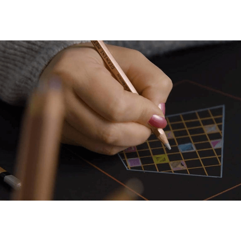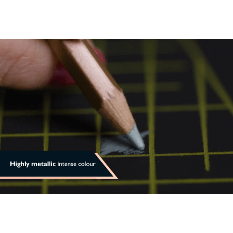 Shimmering, highly metallic Derwent Metallic Pencils blend beautifully together to create vivid and striking effects, particularly on dark paper. The intense metallic formulation and strong core heighten the appearance of the color to produce brilliant definition and rich color application.