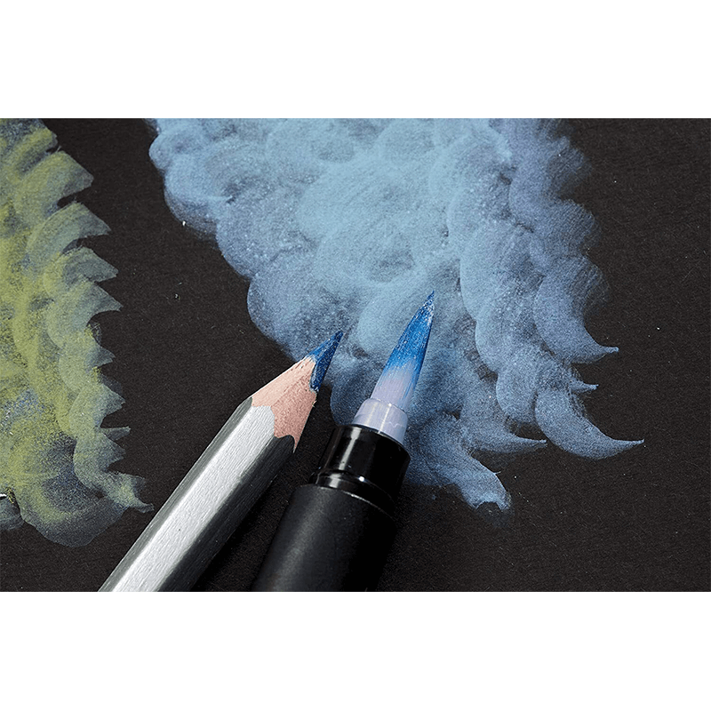 - Non-water-soluble pencils create an intense metallic effect, particularly on black or dark paper.