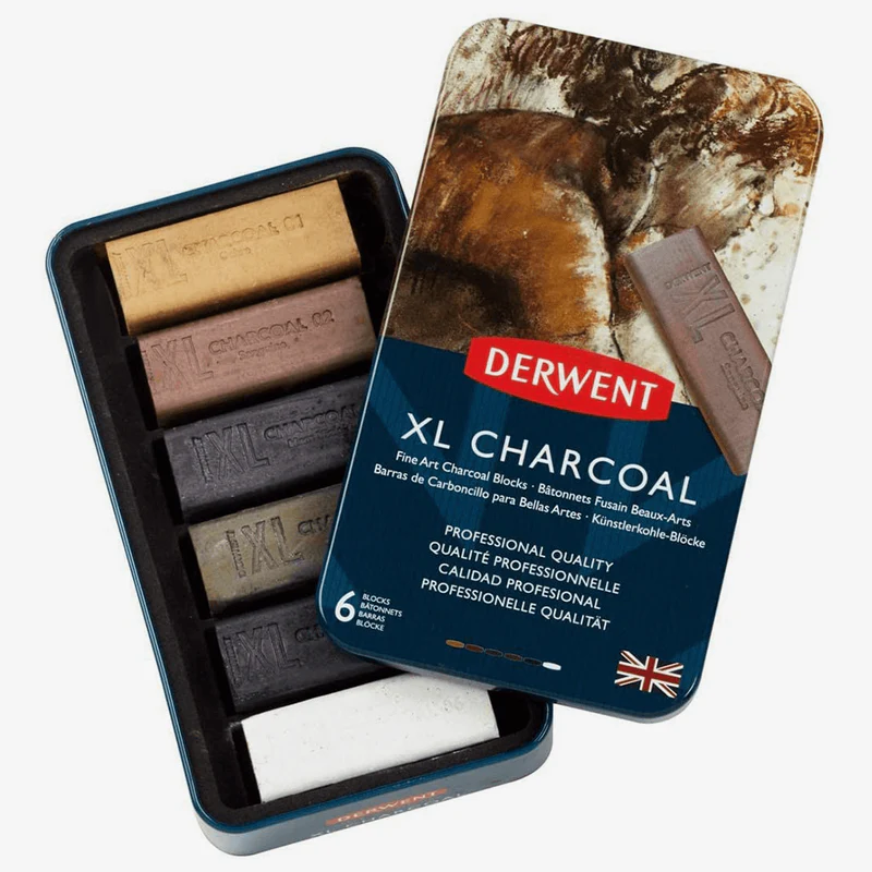 Charcoal just got bigger and more beautiful! These blocks have all the qualities of charcoal that you love, in a chunky XL form, combine that with rich natural colours and what have you got? – An artist’s dream! The blocks come in 6 muted shades from Sanguine and Violet to Sepia and Ochre. Naturally water-soluble you can use them on a damp surface and release lots of colour really quickly and build up layers of different colours as you go. Contains one block of each colour: Ochre, Sanguine, Mars Violet, Sepia, Black, White.