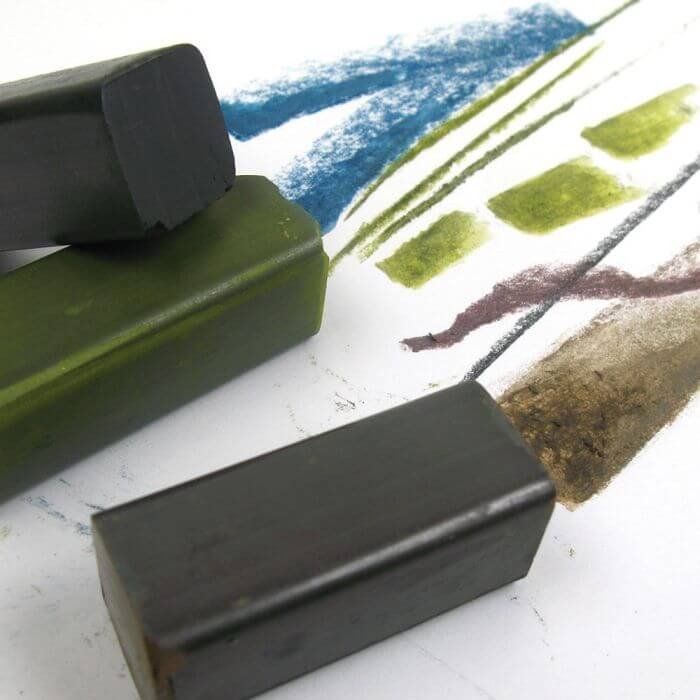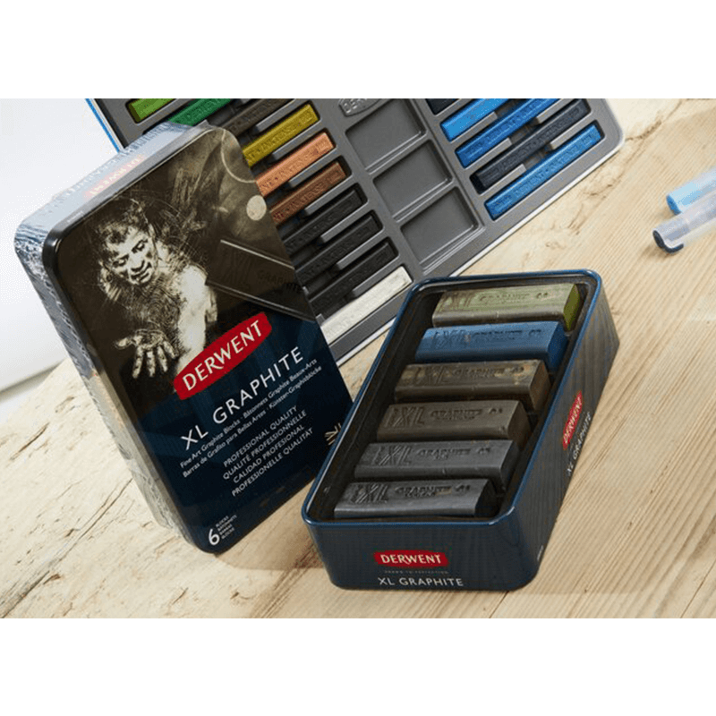 Create a wide variety of textures and effects with these generous Derwent XL Graphite blocks. Subtle blending, fine lines, and deep tonal work are all possible. The graphite is water-soluble, allowing you to experiment with even more techniques. We have developed six dense shades from Olive Green to Burnt and Raw Umber which work well for bold landscapes.