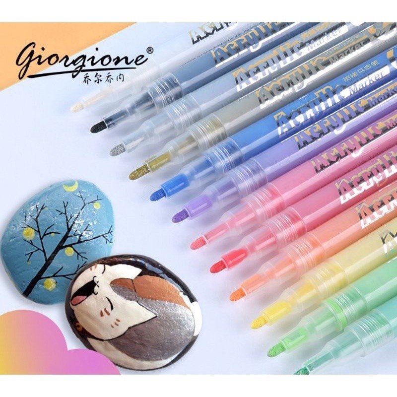 Giorgione Acrylic Paint Marker Pens 12,18,24 Colors Art Permanent Markers for DIY Glass, Ceramic, Rock, Wood, Canvas, Metal, Fabric, Highly Pigmented Acrylic Pens Great for Beginners, Hobbyists