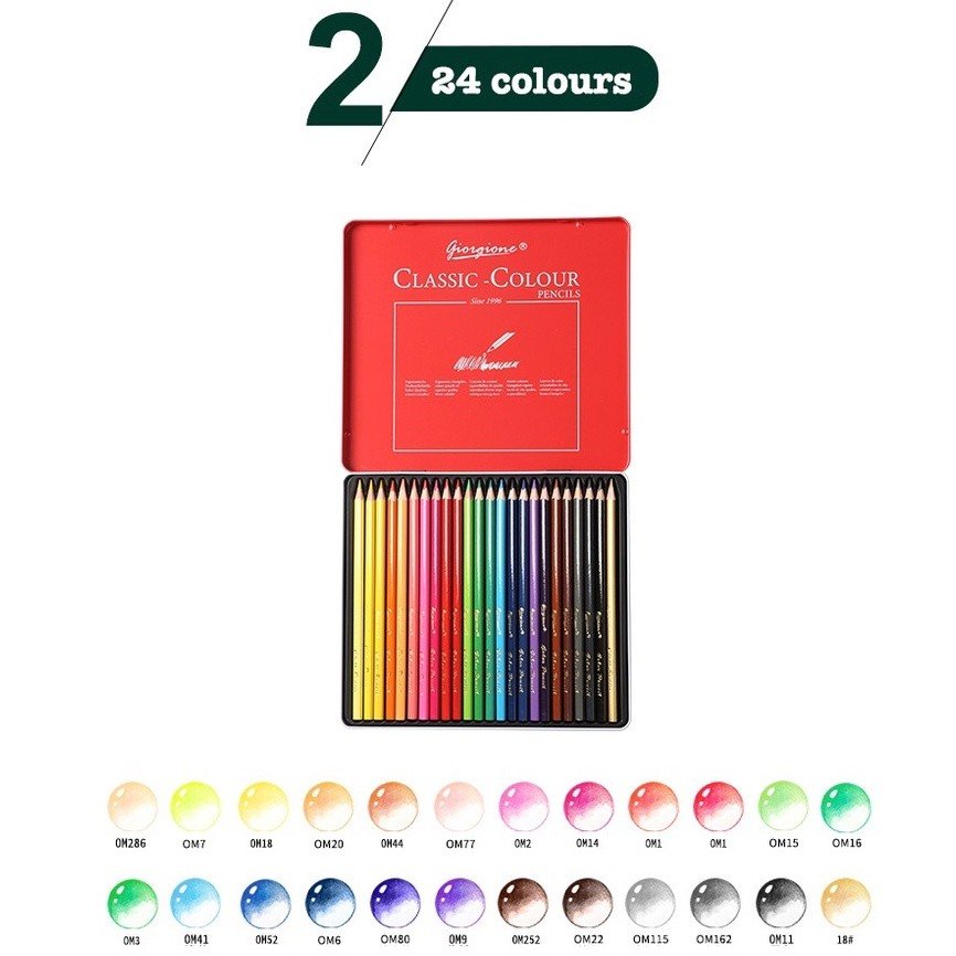 Giorgione Professional Classic Colored Pencil iron box packaging, durable and not easy to break. The color pencil is bright and soft, easy to color. Using SV bonding technology, breaking resistance is added.