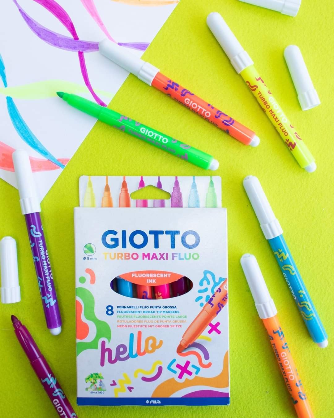 The GIOTTO Turbo Maxi super markers family expands with the new Turbo Maxi FLUO: 8 new super bright and trendy colors, perfect for impactful drawings! With the jumbo tip, they are incredibly easy to use. They are durable and long-lasting.