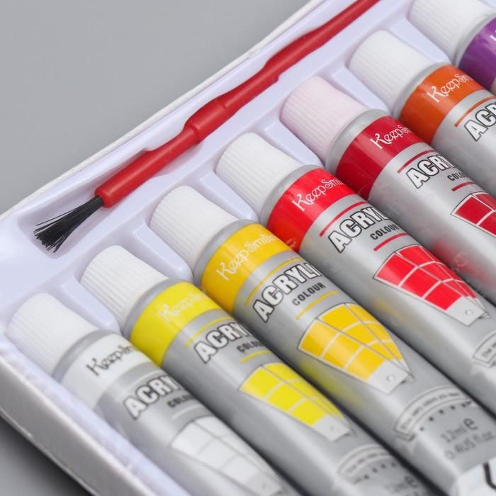 • Keep smiling 12 pieces tubes multi colors acrylic colors starter set with 1 brush, acrylic artists paints may be thinned with water and used as washes in the manner of watercolor paints, but unlike watercolor the washes are not repeatable once dry.