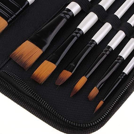 • 12 Assorted Popular Brush Types: Fan, Filbert, Shader, Bright, Flat, Angle, Round & Rigger
