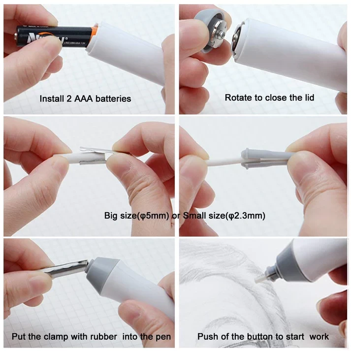 1.Press the button and the eraser starts to rotate.