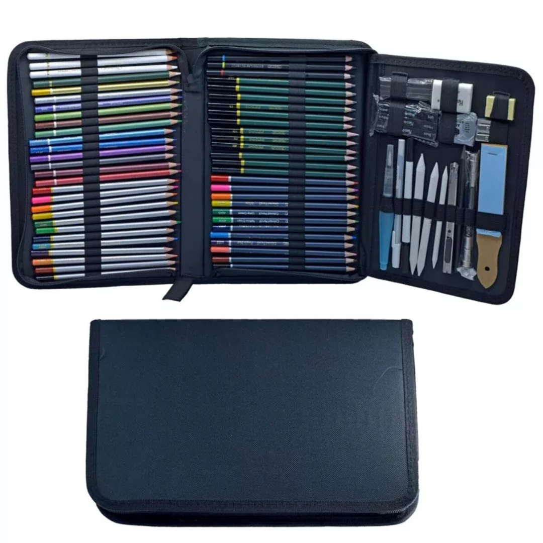Complete Proficient Drawing and Portraying Craftsmanship Set - 75 workmanship set contains all the workmanship pencils you need, Variety of pencil types and Distinctive Variety for you to do any artworks. Perfect for sketching, drawing, blending, coloring and concealing. Craftsman Pencils - This drawing set incorporates 65 pieces Drawing Pencils:12 Outlining Pencil,12 Charcoal Pencil,12 Shaded Pencil,12 Watercolor Pencil,12 Metallic Pencil,4 pastel pencil,1 white charcoal pencil. Each pencil is set apart with variety name and number. our pre-honed workmanship pencils for exact visual imagination and fresh lines. Soft break-safe centers produce unimaginable tone. Additional Craftsmanship Frill - Proficient workmanship apparatuses can make your specialty level reach new heights. Include 3 Mixing Stump, Metal Sharpener, Vinyl Eraser, Pencil Extender, Sandpaper Block, Craftsman Brush. All fundamental attracting devices permit you to begin making whenever. Extravagance and Versatile Bundle - Non-poisonous parts and travel-accommodating nylon conveying case which is convenient for you to do portraying anyplace and whenever. Solid minimal inside and zippered conveying case to hold and safeguard all the portraying devices inside in safe while voyaging, every one of the items stay coordinated and clean. GIFT - Varieties generally encourage individuals, animate their innovativeness and creative mind. Individuals variety in their recreation time for pressure delivering, plentiful tones light up your works and life, and bring shading much fun.ideal for grown-up shading books, make paper, development paper, and scrapbooking! GIFT - Varieties generally encourage individuals, invigorate their inventiveness and creative mind. Individuals variety in their relaxation time for pressure delivering, bountiful tones light up your works and life, and bring shading much fun.ideal for grown-up shading books, make paper, development paper, and scrapbooking!
