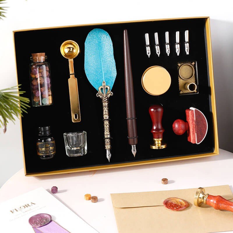 Luxury Retro Vintage Calligraphy Feather Dip Pen Set