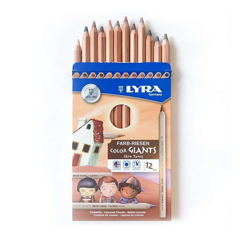 Lyra Skin Tone Colored Pencil Set Of 12 Chunky colored pencils with hexagonal shape provide comfortable grip