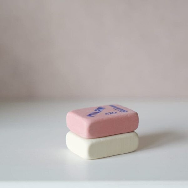 Soft synthetic rubber eraser. Can be used to erase a wide range of graphite pencil strokes from all types of paper. Assorted colours: white and pink. Eraser size: 4.1 x 2.8 x 1.3 cm. MILAN erasers are manufactured in Spain since 1918.