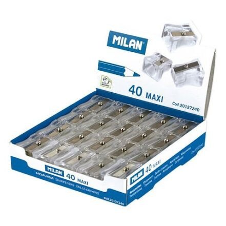 MAXI pencil sharpener without container. The pencil sharpener has a sharp and resistant carbon steel blade which makes it ideal for all varieties of pencils. It also has a safety blade system which prevents the blade from becoming detached from the body of the pencil sharpener.
