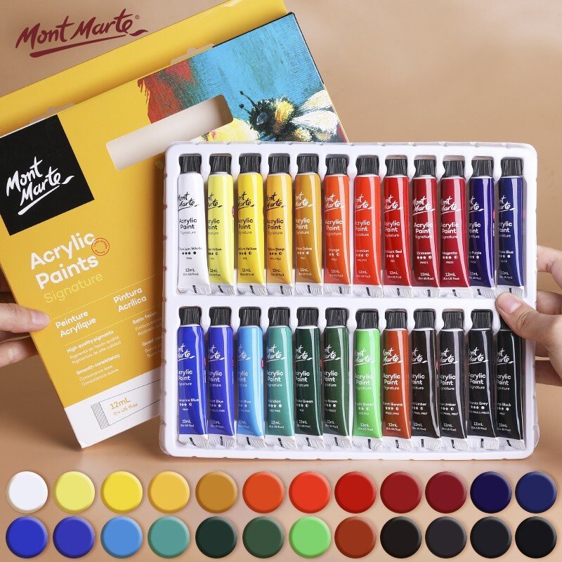 Made with high quality pigments, the Mont Marte Acrylic Paint Set helps stop your artworks fading due to light exposure. The 12ml tubes are also easy to store and carry, whether you're in the studio, transporting your materials to the classroom or heading into the outdoors for some landscape painting. Bring your paintings to life with this beautiful range of cool and warm colours.
