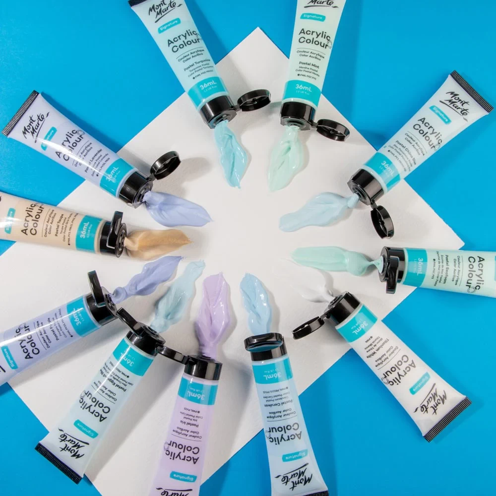 Have fun playing around with our Acrylic Color Pastel Color Paint Set 12pc x 36ml.