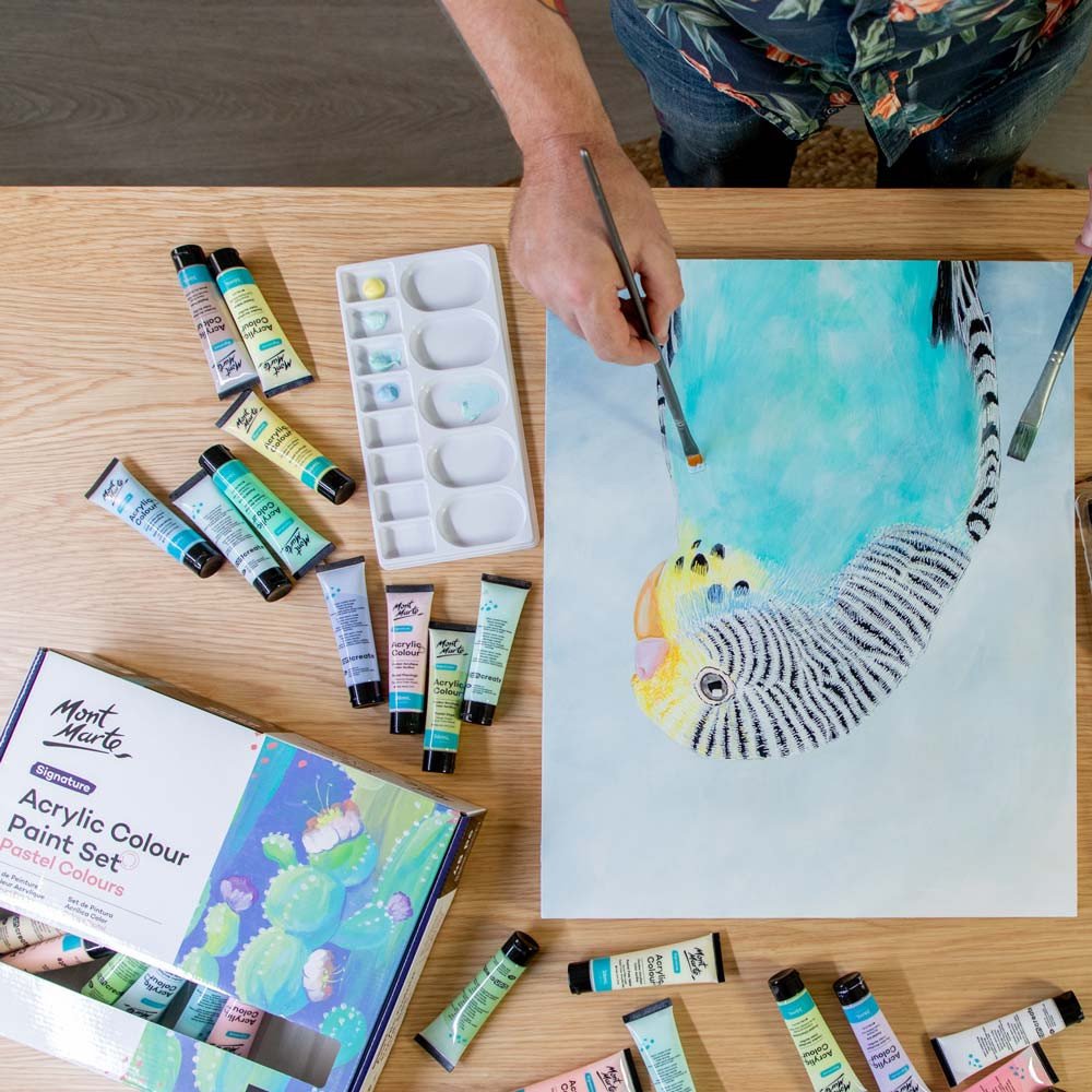 Have fun playing around with our Acrylic Colour Pastel Colour Paint Set 48pc x 36ml (1.2 US fl.oz). The set includes 48 creamy, pastel colours that offer up a great palette for modern design projects. These acrylic paints feature a smooth, creamy texture and good coverage that dries to a semi-matte finish. Plus, they’re fast-drying so you can layer paint without muddying colours, making it ideal for a classroom setting. These versatile art paints work on most surfaces including canvas, cardboard, leather and more. Pick up this dreamy pastel paint set and get started on your next art or craft project.